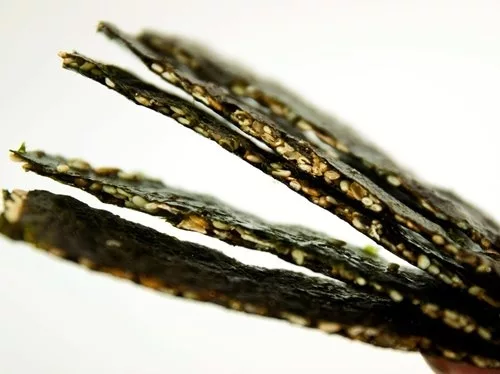 南瓜子、芝麻、海苔的絕妙組合,海苔包裹著南瓜籽及白芝麻,組合出絕妙的新鮮口感。滿滿的南瓜子,脆口又好吃!