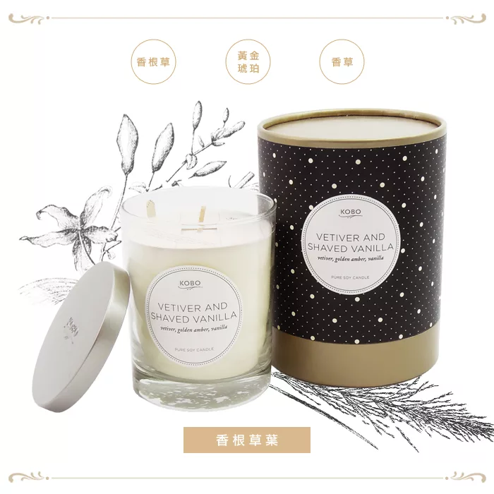 【KOBO】美國大豆精油蠟燭 - 香根草葉 (330g-可燃燒80hr)![]()