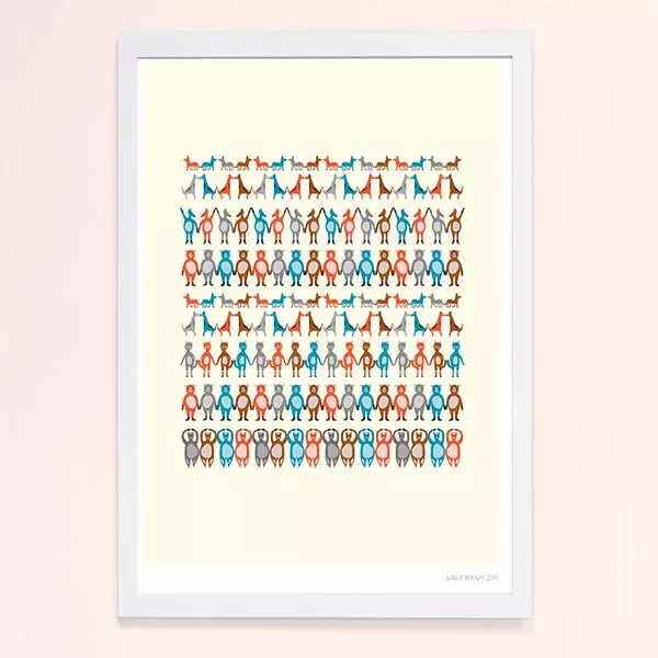 【摩達客】西班牙知名插畫家Judy Kaufmann藝術創作海報掛畫裝飾畫 (附Judy本人簽名)(含木框)動物群 現金回饋