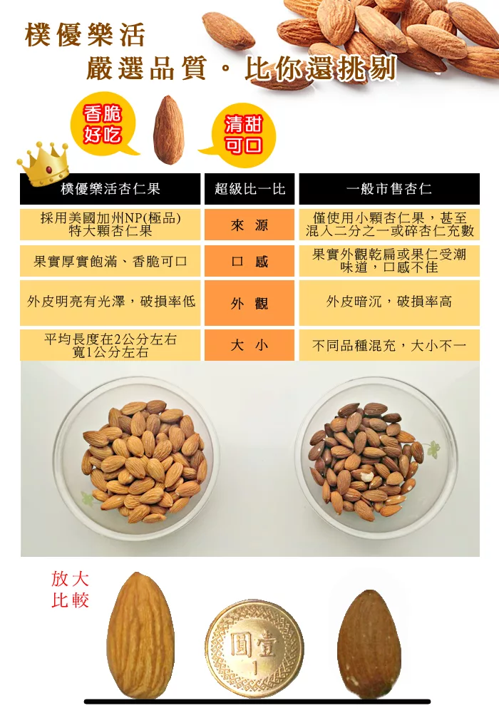 【樸優樂活】經典皇家美國原味生杏仁果 評價